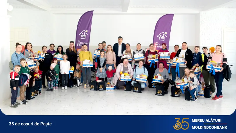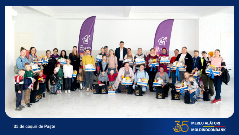 Acțiunea are o semnificație aparte: cele 35 de coșuri oferite simbolizează cei 35 de ani de activitate ai Moldindconbank – ani în care banca a crescut alături de comunitate și a rămas aproape de oamenii care au nevoie de sprijin.