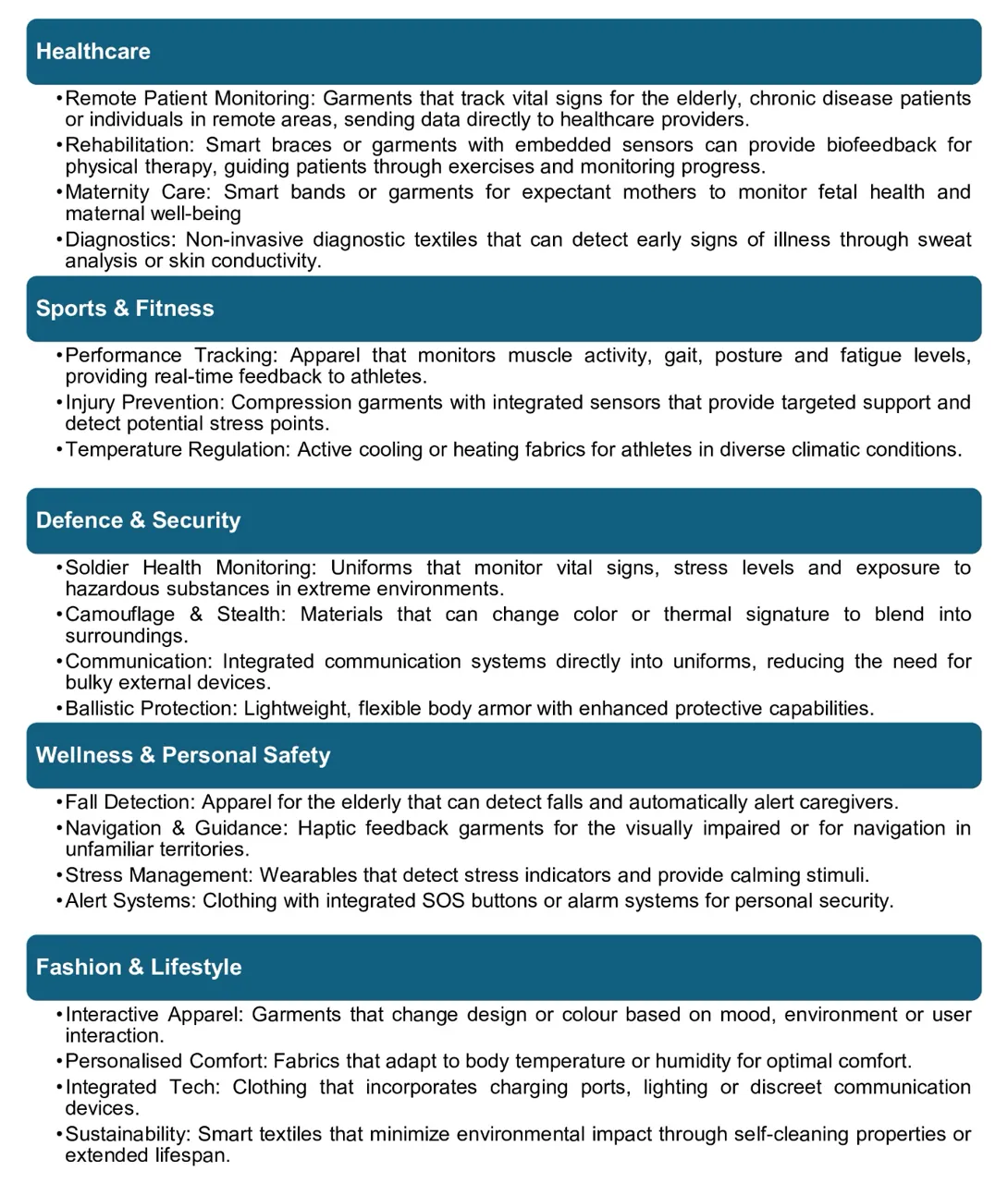 Aplicațiile potențiale ale textilelor inteligente și ale dispozitivelor purtabile în India sunt vaste și diverse, pregătite să influențeze sectoarele critice: