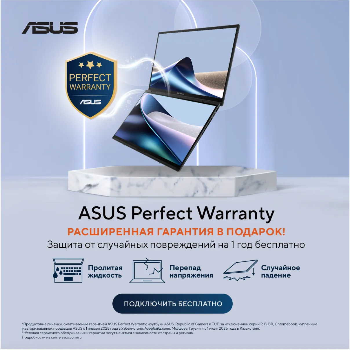 ASUS ProArt GoPro Edition este eligibil pentru programul de garanție extinsă ASUS Perfect Warranty. Acesta oferă protecție pentru daune care nu sunt acoperite de garanția standard a producătorului: căderi accidentale, deteriorări provocate de lichide, fluctuații de tensiune și defecțiuni fizice. Pentru a beneficia de ASUS Perfect Warranty, utilizatorii trebuie să creeze un cont ASUS și să înregistreze laptopul în termen de 90 de zile de la achiziție.