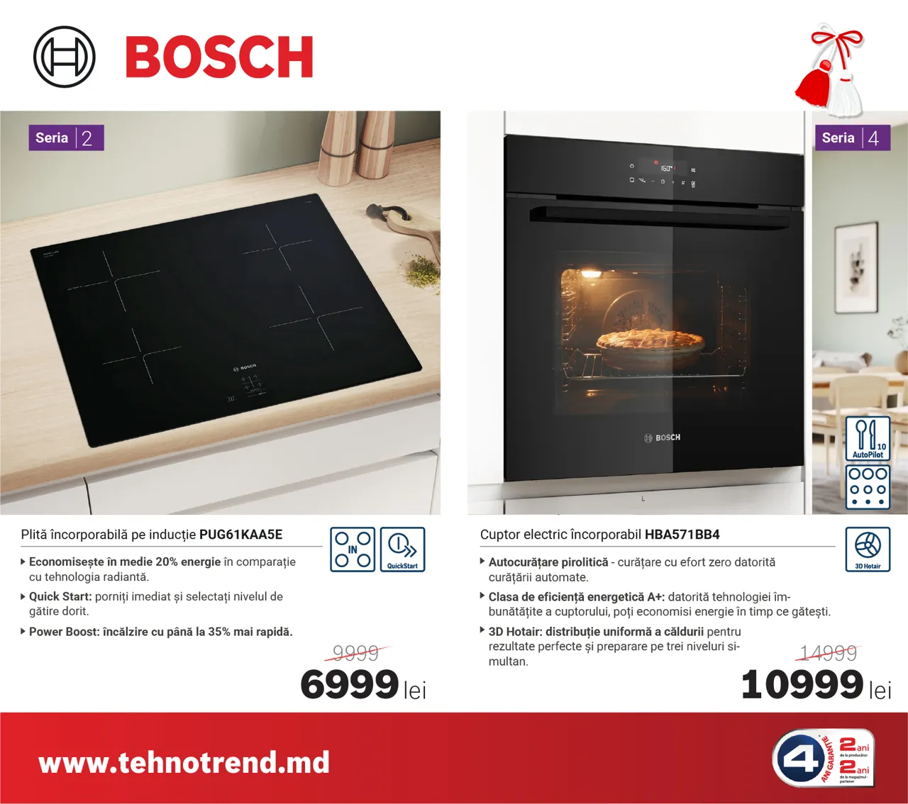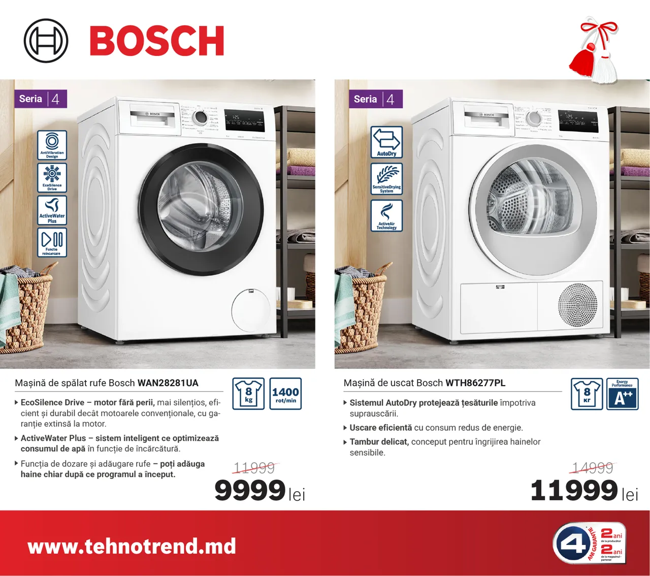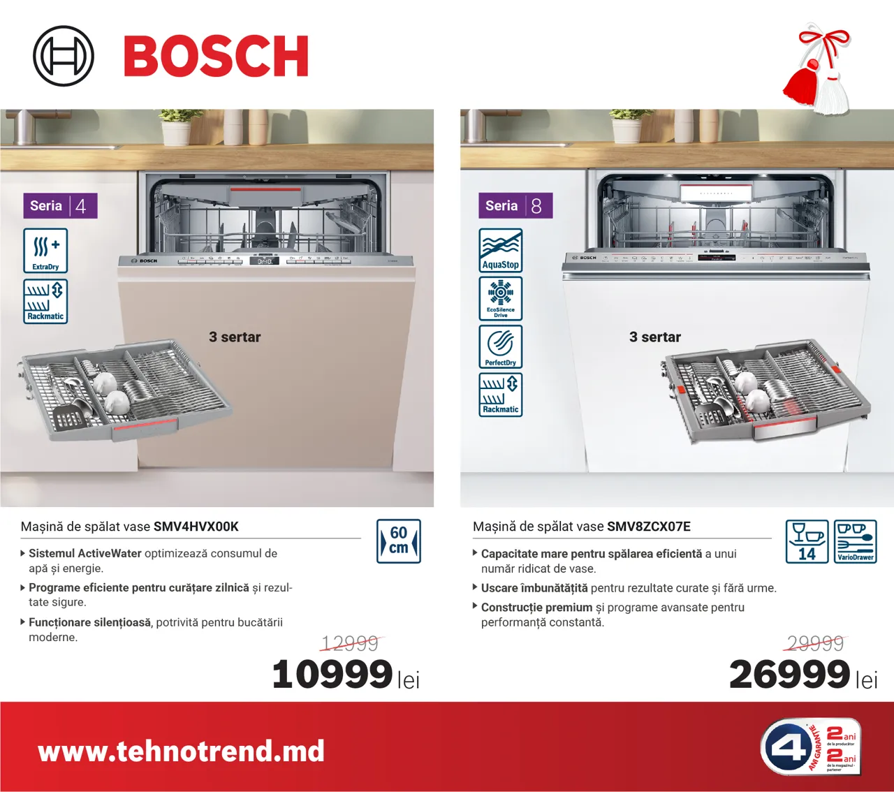 La Tehno Trend, partener oficial Bosch în Moldova, sezonul reducerilor de primăvară a început, iar acum poți beneficia de oferte speciale și reduceri de până la 4000 lei la electrocasnicele Bosch preferate. Indiferent dacă îți renovezi bucătăria sau vrei să-ți modernizezi zona de spălare și îngrijire a hainelor, în această perioadă găsești modele performante la prețuri speciale.