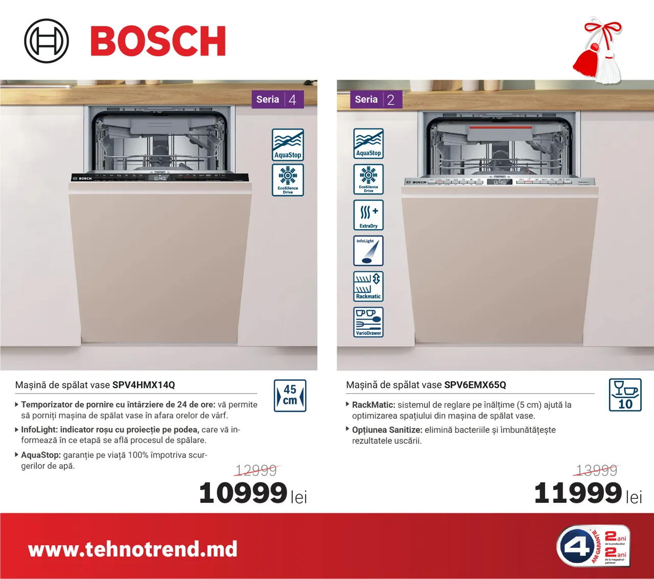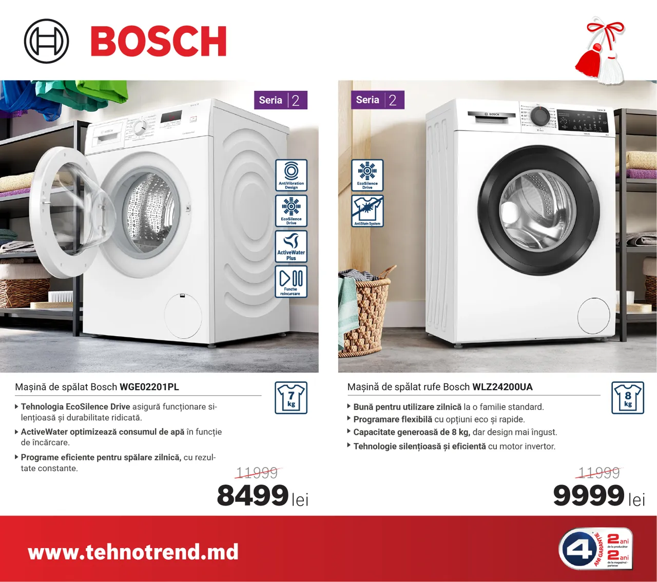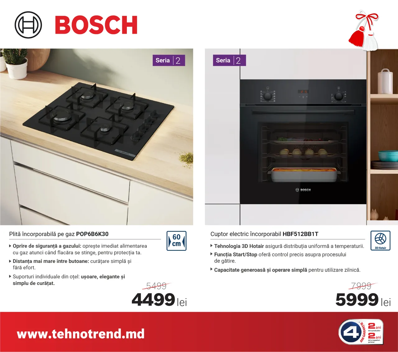 La Tehno Trend, partener oficial Bosch în Moldova, sezonul reducerilor de primăvară a început, iar acum poți beneficia de oferte speciale și reduceri de până la 4000 lei la electrocasnicele Bosch preferate. Indiferent dacă îți renovezi bucătăria sau vrei să-ți modernizezi zona de spălare și îngrijire a hainelor, în această perioadă găsești modele performante la prețuri speciale.