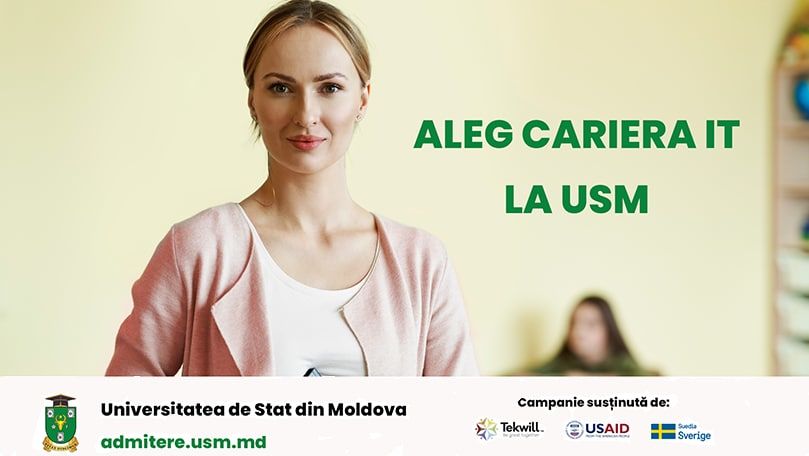 Dacă îți dorești o carieră de succes în domeniul IT, cu cel mai mare salariu pe economie, urmează-ți studiile la Facultatea de Matematică și Informatică și Facultatea de Fizică și Inginerie a Universității de Stat din Moldova. Pentru a facilita depunerea dosarelor la concursul de Admitere, USM a creat platforma EADMITERE. De menționat că oferta educațională cu privire la toate facultățile poate fi consultată aici: Broșurile facultăților USM sau pe site, selectând compartimentul Licență-specialități și respectiv Masterat-specialități.