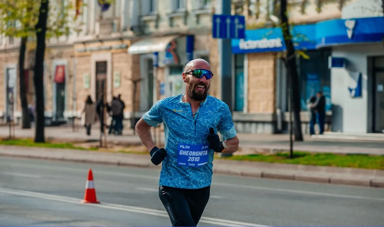 Vitalie Gheorghiță în timpul cursei OM Half Marathon 2025, pe traseul din Chișinău