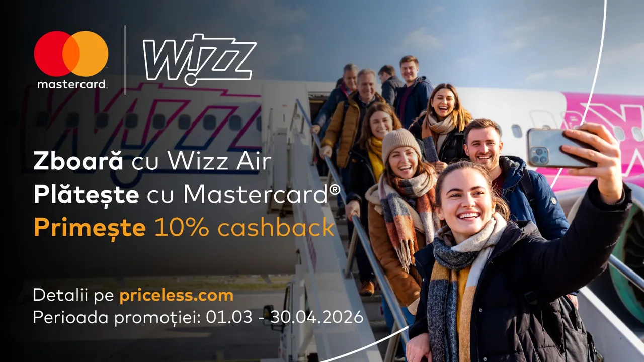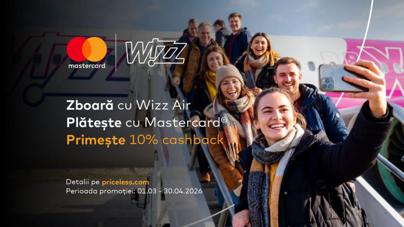 Mastercard lansează în Republica Moldova o nouă campanie promoțională dedicată utilizatorilor de carduri Mastercard, oferindu-le posibilitatea de a primi 10% cashback pentru achizițiile de bilete Wizz Air.