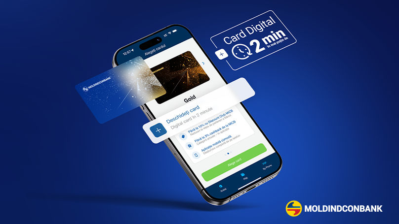 Acum, cardurile Moldindconbank pot fi deschise în format digital direct în aplicația MICB Mobile Banking. Cu această funcție, deschiderea unui card devine mai simplă ca niciodată: fără vizită la bancă, fără hârtii, fără timp pierdut.