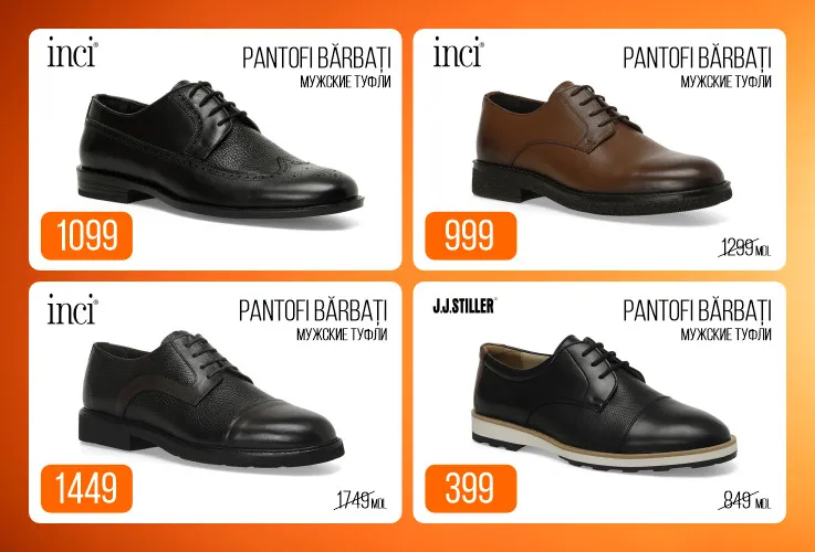 Bărbații pot alege dintr-o selecție largă de pantofi casual, mocasini, adidași sport și ghete robuste, perfecte atât pentru activitățile zilnice, cât și pentru ocazii speciale. Brandurile consacrate garantează un mix ideal între stil și confort.
