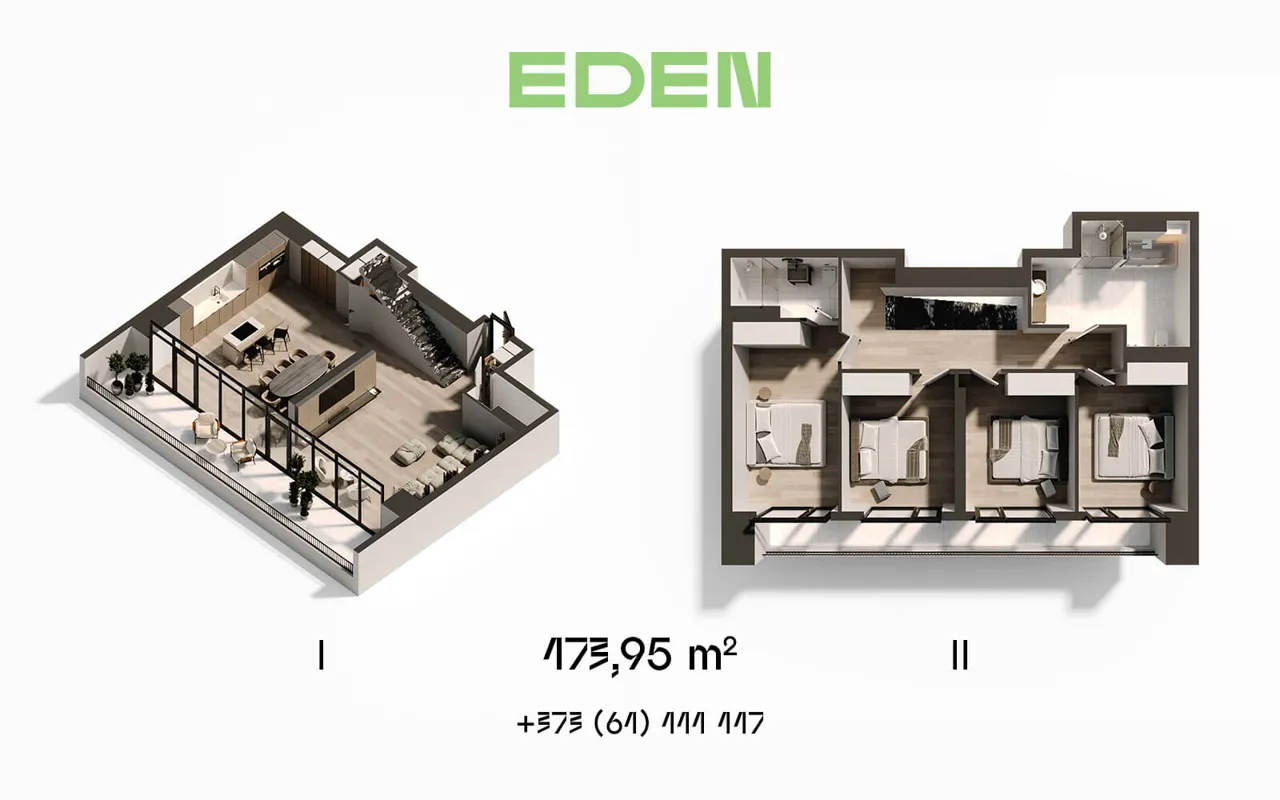 Pentru cei care visează la ceva cu adevărat special, Eden oferă apartamente pe două niveluri, situate la ultimele etaje. Acestea nu sunt doar locuințe, ci un nou stil de viață, unde eleganța și confortul ating un alt nivel. Două etaje bine compartimentate îți permit să creezi secțiuni distincte pentru relaxare, muncă și timp liber. Ferestrele panoramice oferă priveliști impresionante asupra orașului, iar etajul superior poate deveni birou, dormitor, bibliotecă sau un seting artistic care reflectă stilul și ritmul tău de viață.
