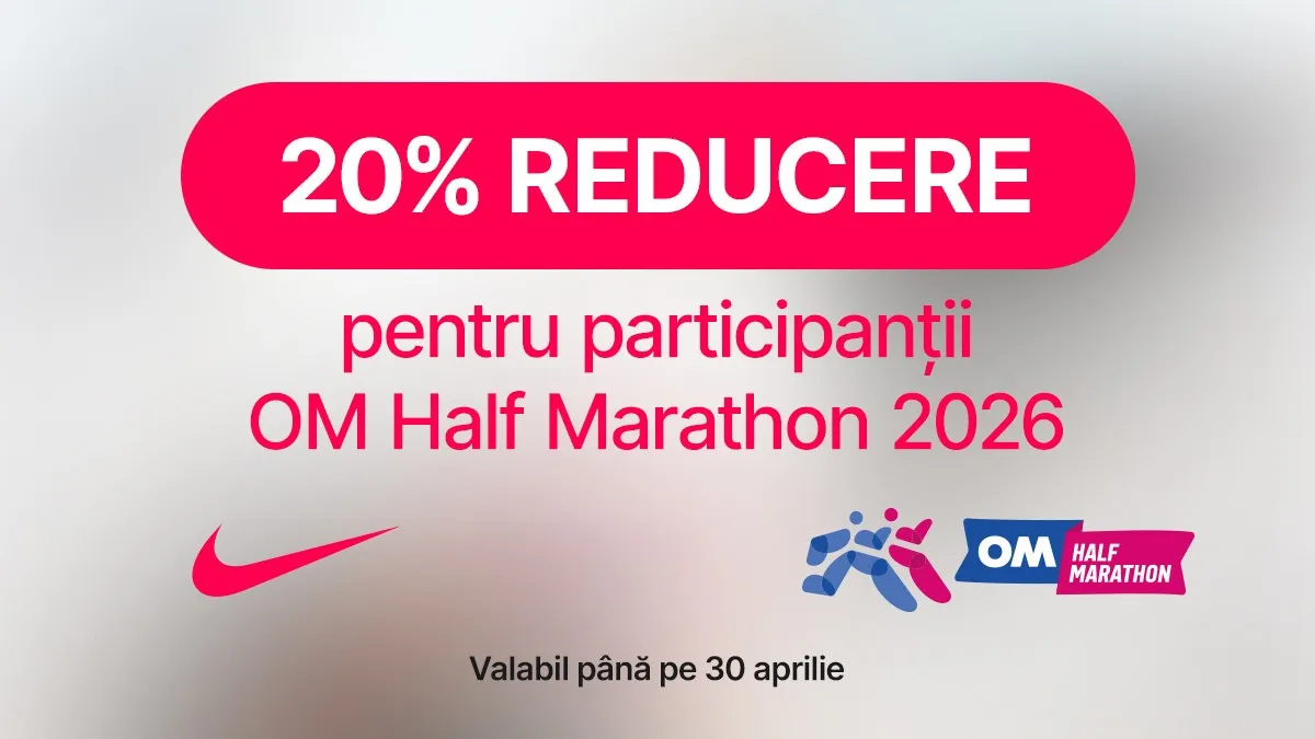 Magazinul Nike vine în întâmpinarea tuturor participanților la OM Half Marathon 2026 cu o ofertă specială: 20% reducere la întregul asortiment de alergare. De la încălțăminte de performanță până la îmbrăcăminte de alergare concepută pentru confort și viteză, tot ce ai nevoie pentru a-ți atinge obiectivele este acum mai accesibil. Pregătește-te să alergi mai bine, mai rapid și mai încrezător – cu Nike alături de tine la fiecare pas.