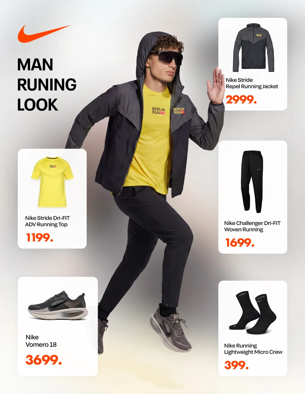 Echipamentul potrivit face diferența în zilele cu vreme imprevizibilă. Alege piese ușoare, respirabile și rezistente la apă, care îți mențin ritmul fără compromisuri. Vestă Nike Stride Repel acum la doar 2999 lei, tricou Nike Stride Dri-FIT cu numai 1199 lei și încălțăminte Nike Vomero 18 la un preț special de 3699 lei.