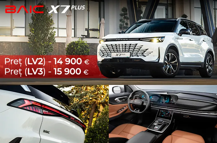 SUV premium la un preț avantajos — de la 14 900 euro. BAIC X7 Plus oferă dotări confortabile și un design modern într-un segment în care, de obicei, se plătește semnificativ mai mult.