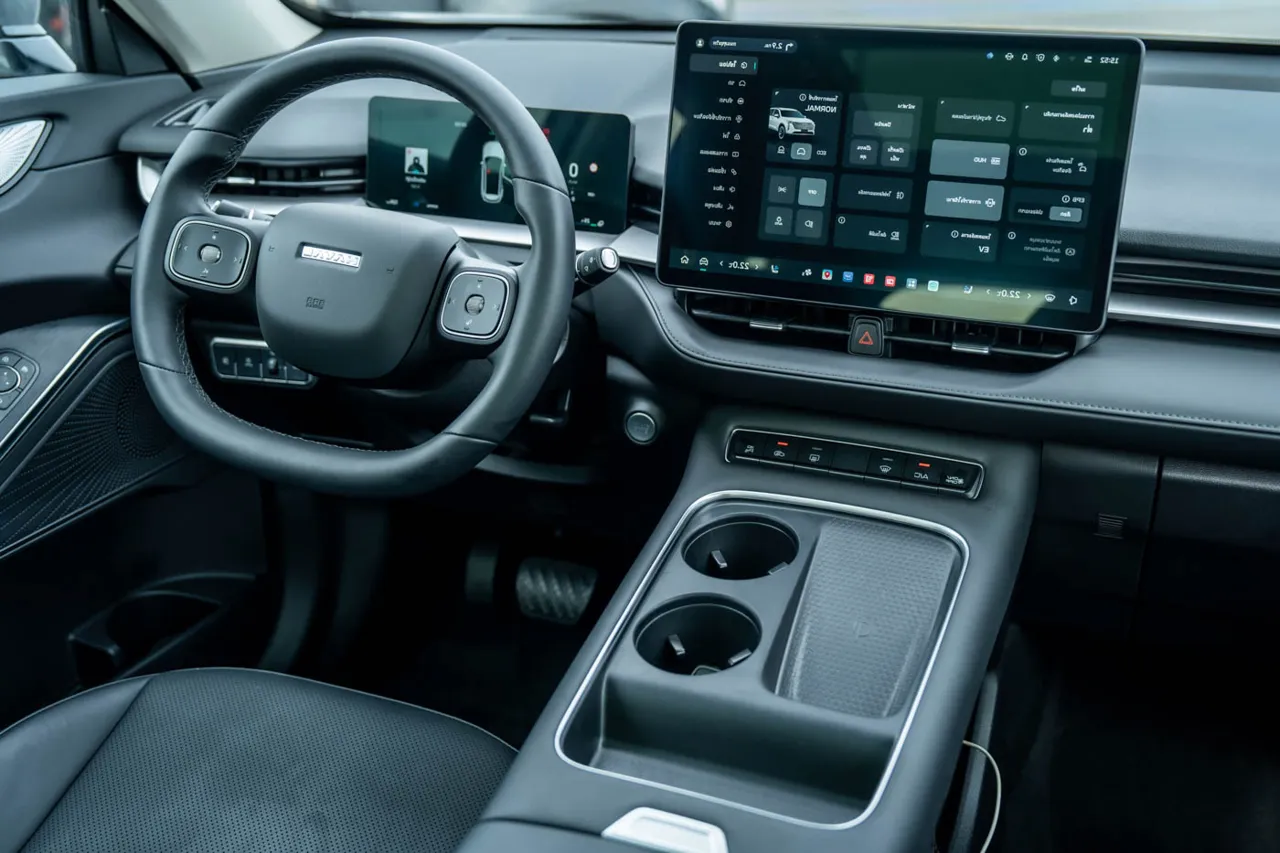 În interiorul modelului HAVAL H6 PHEV, consola centrală a păstrat arhitectura familiară, iar volanul a primit un design nou, mai modern.