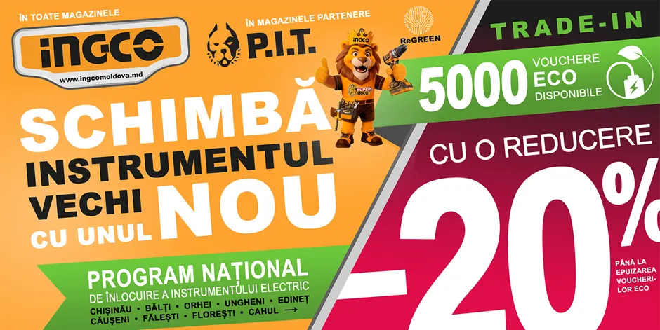 Deschiderea magazinului din Cahul are loc în cadrul Programului Național de schimb al sculelor electrice, desfășurat simultan în 16 magazine din țară — în toate cele 10 magazine oficiale INGCO și în cele 6 magazine partenere PIT.md.![]()