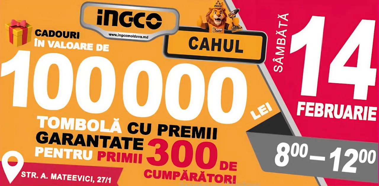 Sâmbătă, 14 februarie, la ora 8:00, locuitorii orașului Cahul sunt invitați la deschiderea oficială a magazinului nr. 2081 al liderului mondial în scule și unelte electrice cu acumulator INGCO.