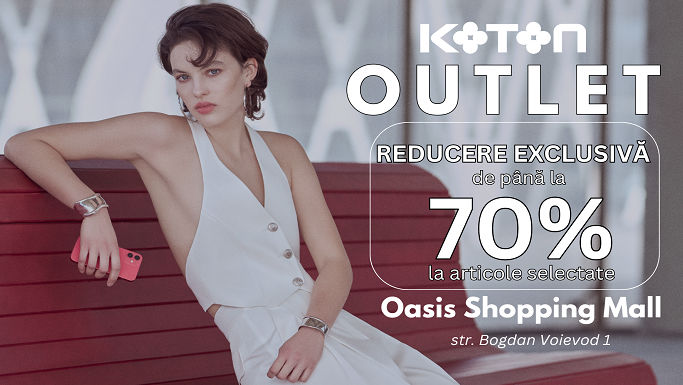 După o transformare majoră, Koton Outlet de la Oasis Shopping Mall a devenit un loc în care vă puteți actualiza garderoba la preț avantajos și vă puteți bucura de cumpărături. Vă așteaptă o gamă largă de îmbrăcăminte elegantă și modernă pentru femei, bărbați și copii, absolut toate articolele fiind disponibile cu reduceri de până la 70%.