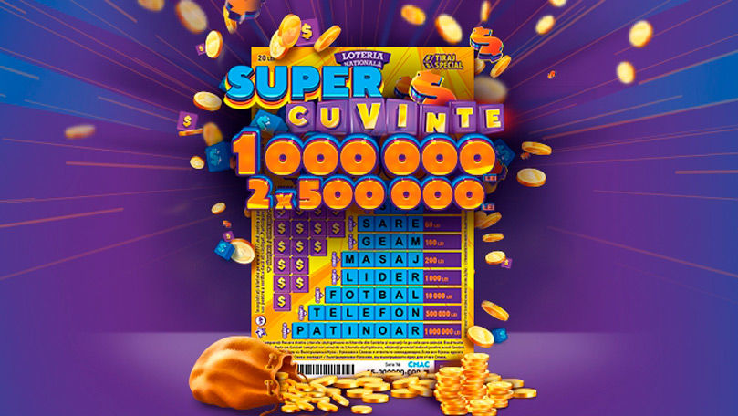 Cuvintele continuă să aducă câștiguri incredibile datorită celei mai recente noutăți de la Loteria Națională - biletul ”Super Cuvinte”, în tiraj special. Un singur cuvânt din acest bilet colorat vă poate îmbogăți cu sume impresionante de până la 1 000 000 de lei.