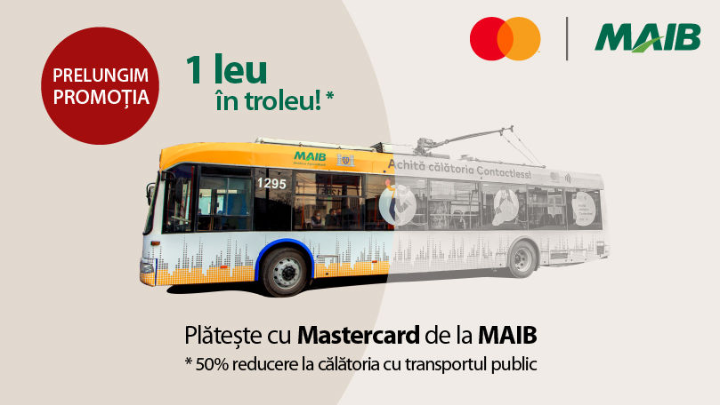 MAIB: Promoția "1 leu în troleu" revine. Achită cu Mastercard de la MAIB în transportul public din capitală Ⓟ