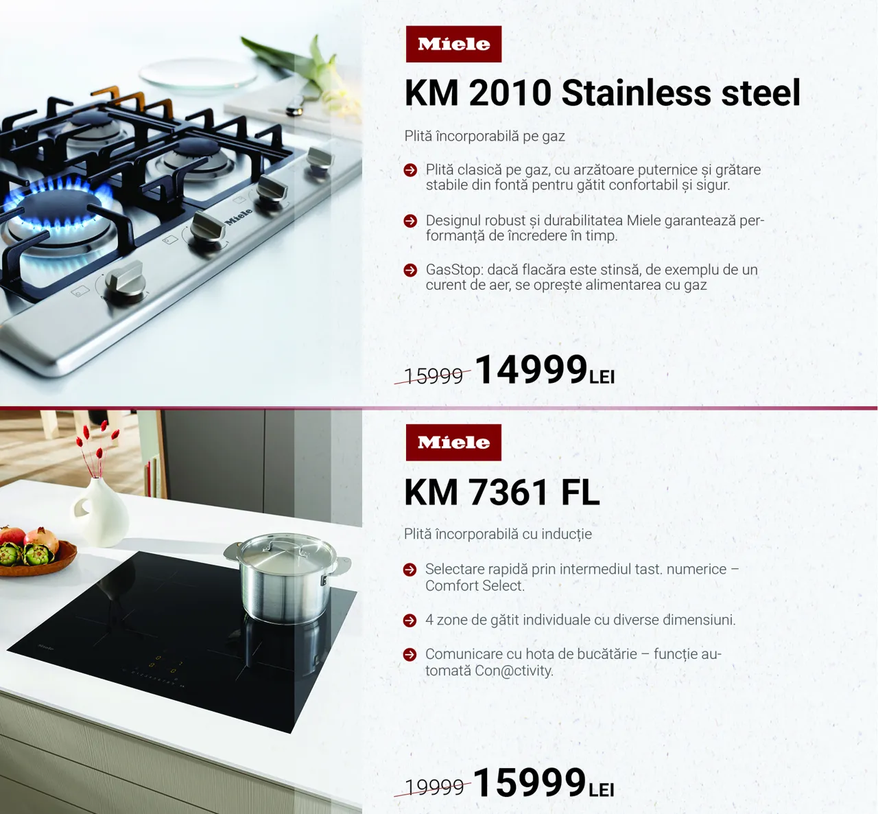 Plitele pe inducție Miele oferă precizie, siguranță și eficiență energetică, fiind alegerea ideală pentru gătitul modern. Acum poți lua plita Miele KM7361FL cu reducere de 4 000 lei. Control intuitiv și reacție instantă la schimbările de temperatură – pentru preparate gătite exact așa cum îți dorești.