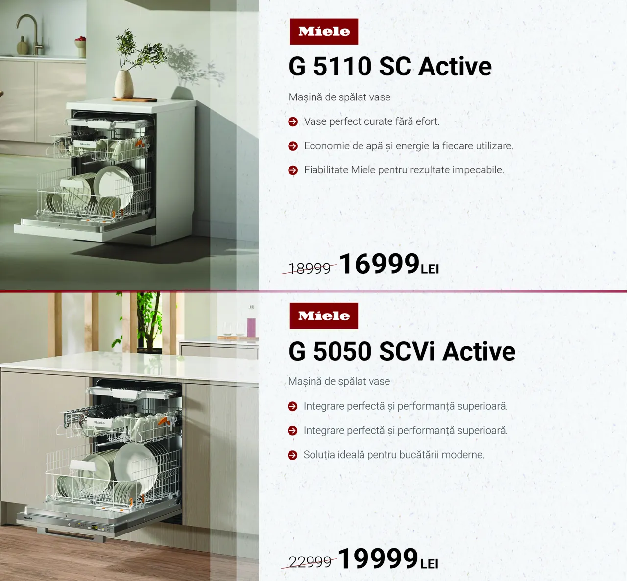 După mesele bogate de Paște, Miele îți simplifică viața prin performanță și eficiență. Mașină de spălat vase Miele G5110 – doar 16 999 lei Spală eficient chiar și cele mai dificile vase, economisind timp și apă, astfel încât tu să te bucuri de momentele cu cei dragi.