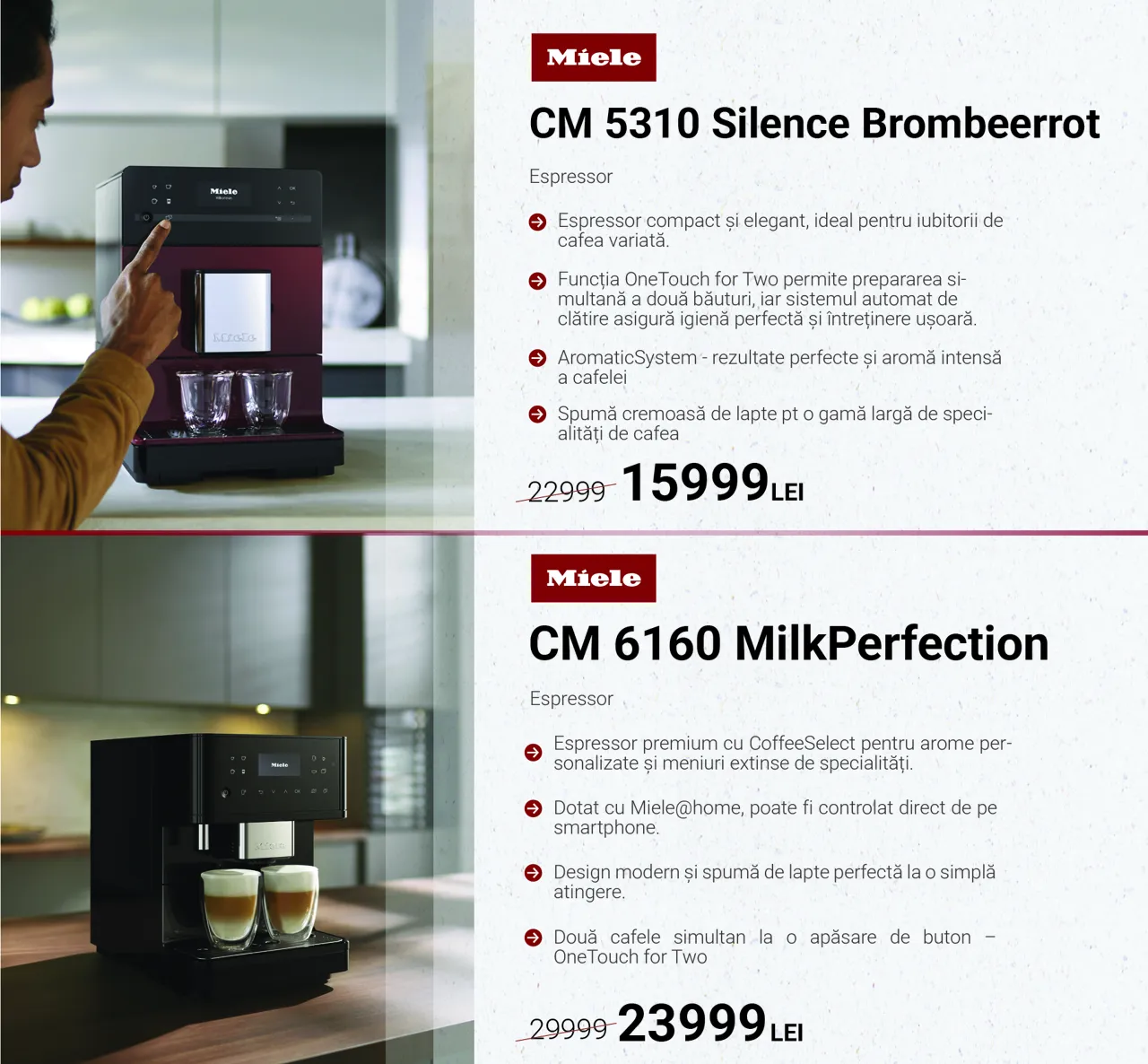 Surprinde-ți oaspeții și transformă fiecare moment într-o experiență memorabilă, cu o cafea de calitate, pregătită chiar la tine acasă. Espressor Miele CM5310 – doar 15 999 lei. De la espresso intens la cappuccino cremos, totul este la o simplă atingere de buton. Elegant și ușor de utilizat.