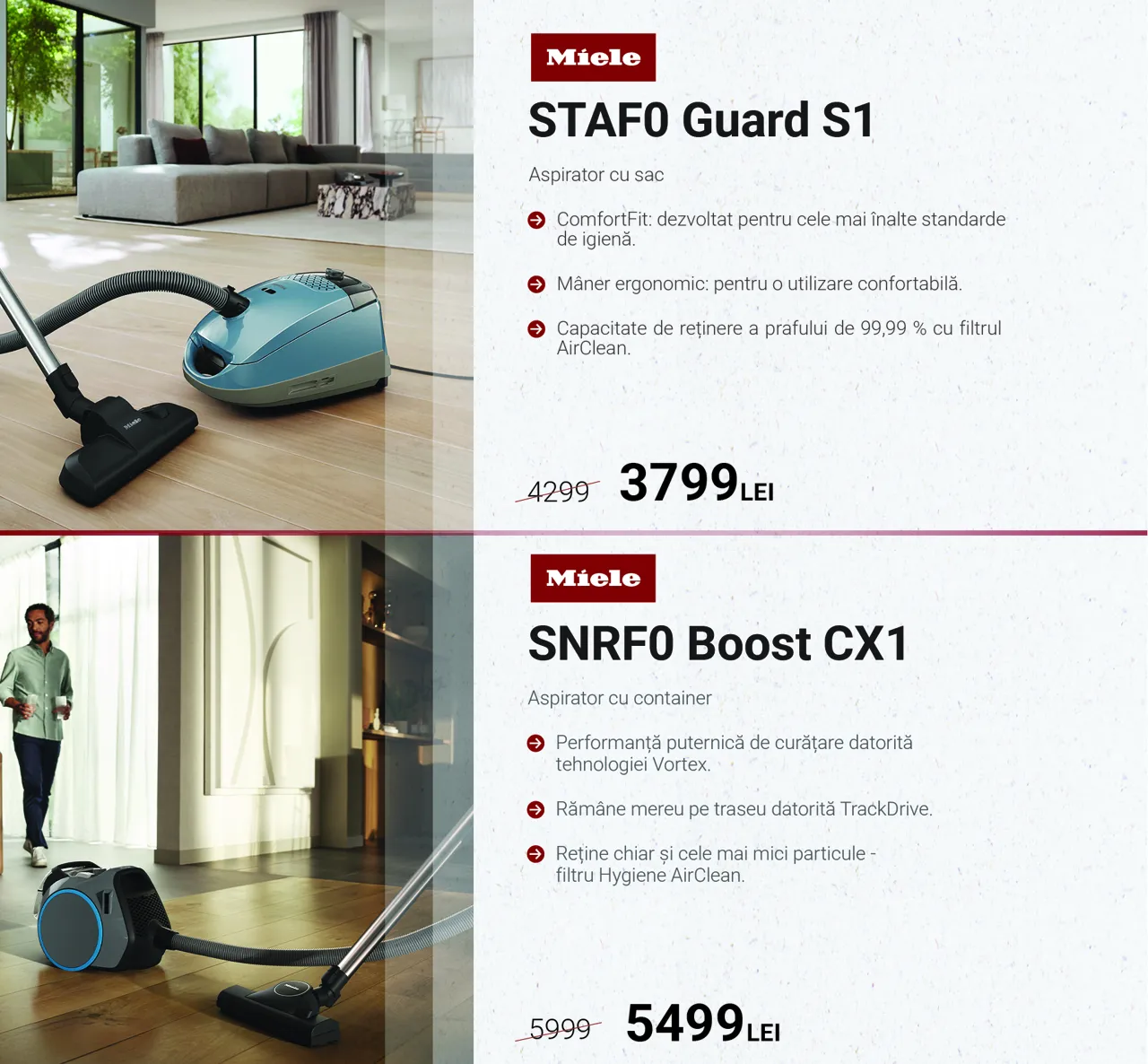 O casă curată înseamnă liniște, confort și mai mult timp pentru lucrurile care contează cu adevărat. Alege aspiratorul Miele Guard S1 – doar 3 799 lei. Puternic și fiabil, acest aspirator este ideal pentru curățenia zilnică.