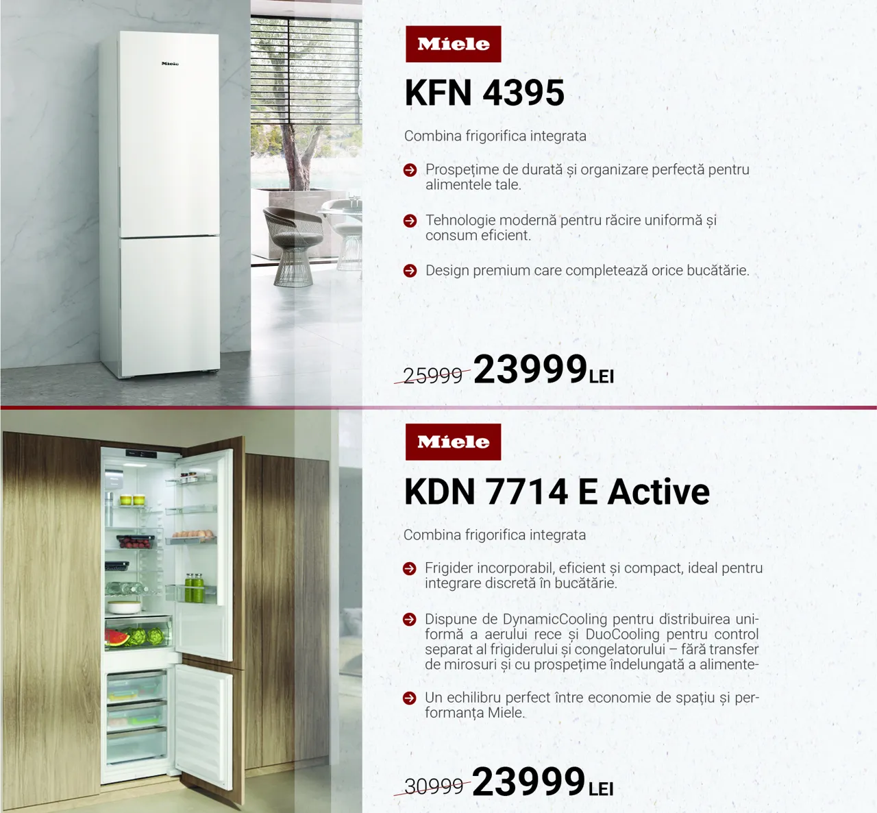 Pentru preparate reușite, ingredientele trebuie să fie păstrate în cele mai bune condiții. Frigiderul Miele KDN7714E este acum disponibil cu o reducere de 7 000 lei. Menține prospețimea alimentelor mai mult timp, oferind condiții optime de depozitare.