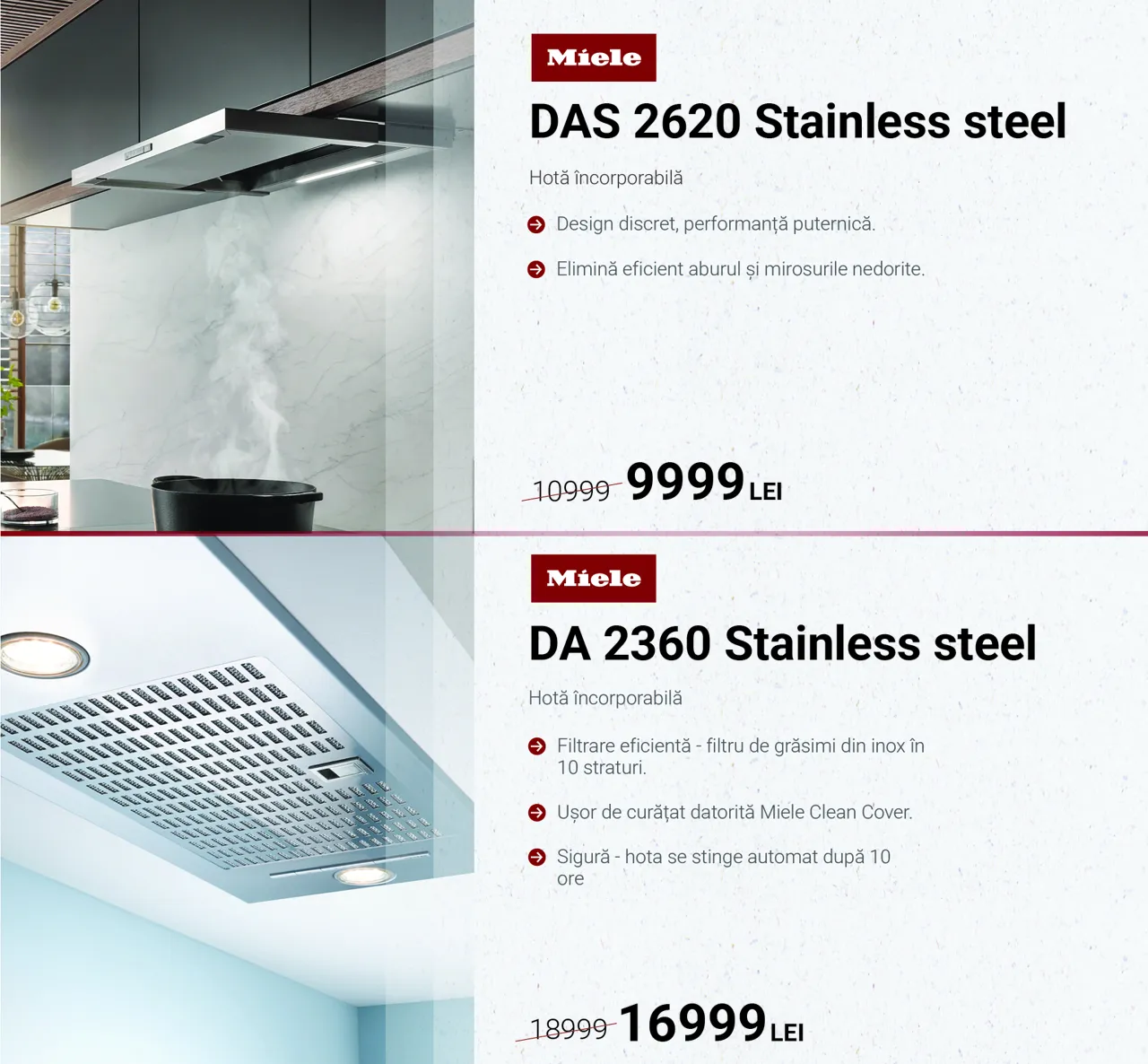 Iar pentru un spațiu curat fără mirosuri, mai ales în timpul pregătirilor intense de sărbători, este esențială hota Miele DAS2620 – doar 14 999 lei. Design discret și putere mare de absorbție, pentru o bucătărie confortabilă, indiferent de ce gătești.
