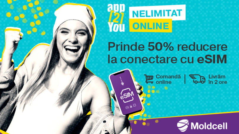 Moldcell: app2You și eSIM îți oferă Nelimitat Online, acum cu 50% reducere Ⓟ