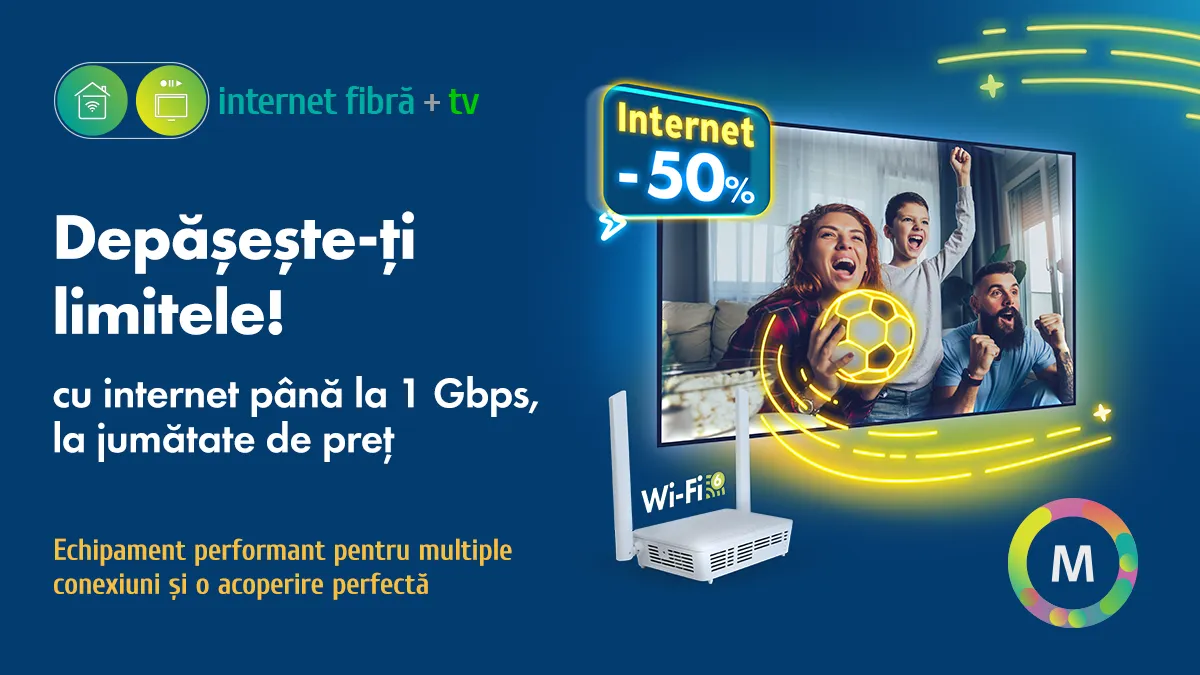 - Internet Fibră cu 50% reducere pe toată perioada contractuală