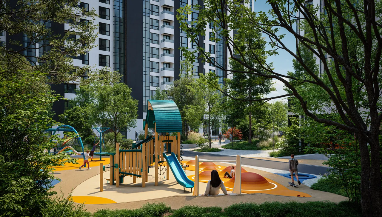 Un element central al proiectului este recreerea pentru toate vârstele. Pentru cei mici există zone sigure, cu echipamente adaptate și suprafețe amortizante, iar pentru copiii mai mari și adolescenți sunt prevăzute zone destinate mișcării și activităților în aer liber: locuri de cățărat, explorare și activități dinamice.