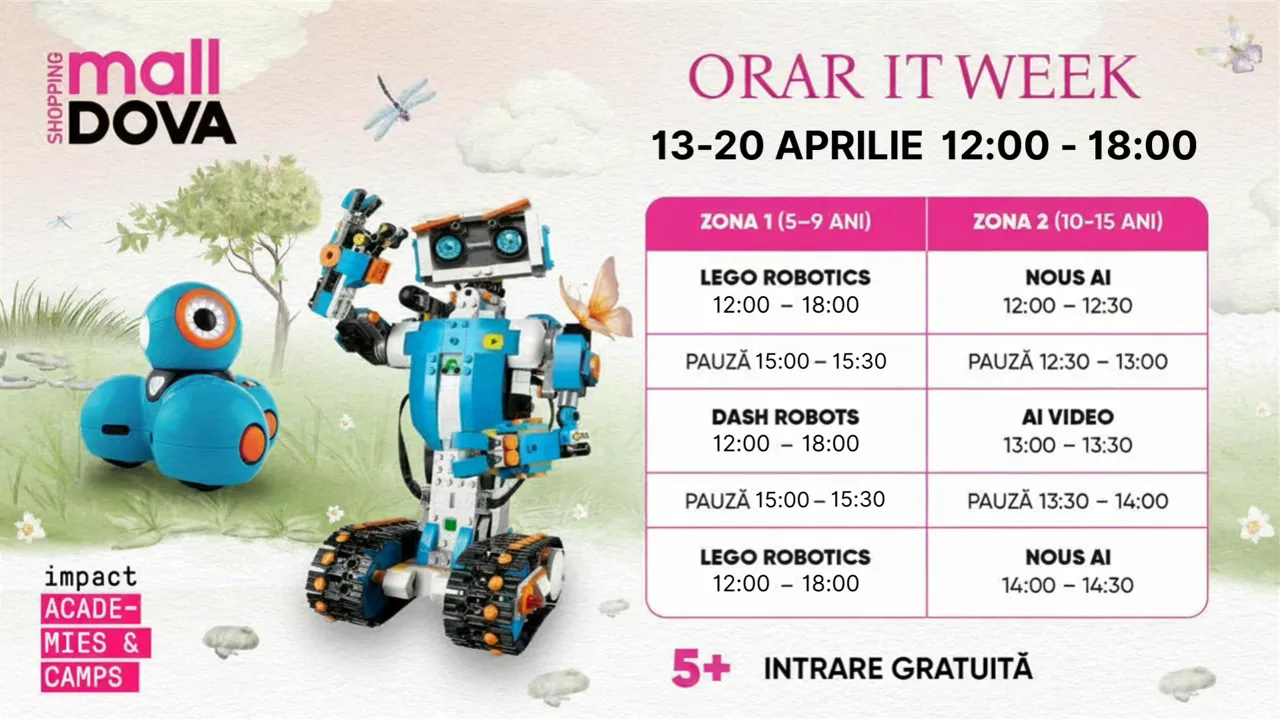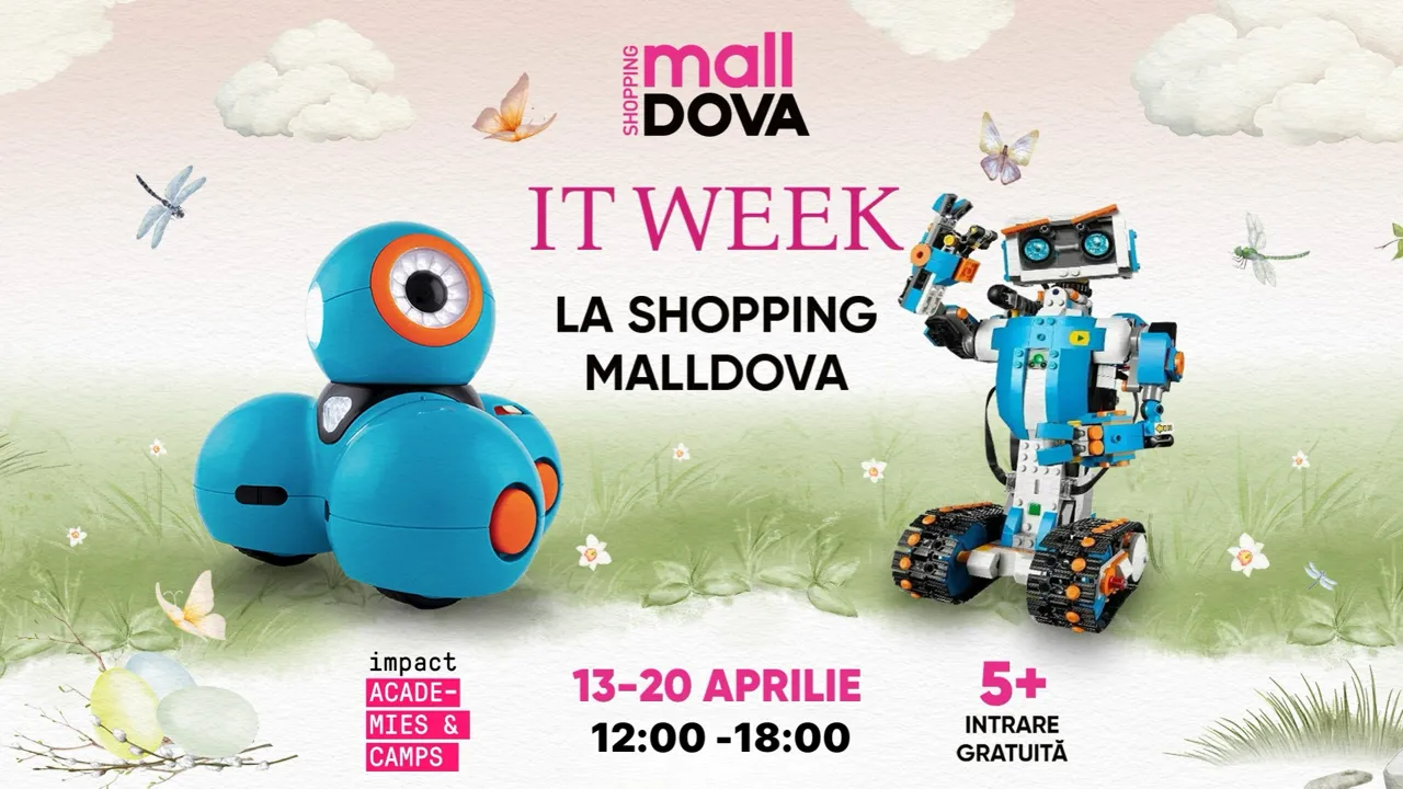 În perioada 13–20 aprilie, între orele 12:00 și 18:00, Shopping MallDova găzduiește IT Week – o serie de activități gratuite pentru copii și adolescenți. Participanții vor descoperi lumea tehnologiei prin workshop-uri interactive și sesiuni educative captivante, combinând distracția cu învățarea.