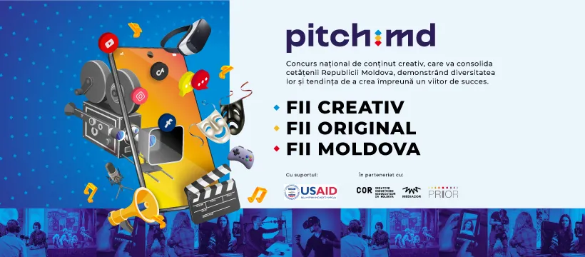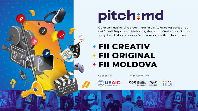 PITCH.MD este susținut de Agenția Statelor Unite pentru Dezvoltare Internațională (USAID) în parteneriat cu Asociația Industriilor Creative din Moldova (COR), MEDIACOR și PRIOR MEDIA.