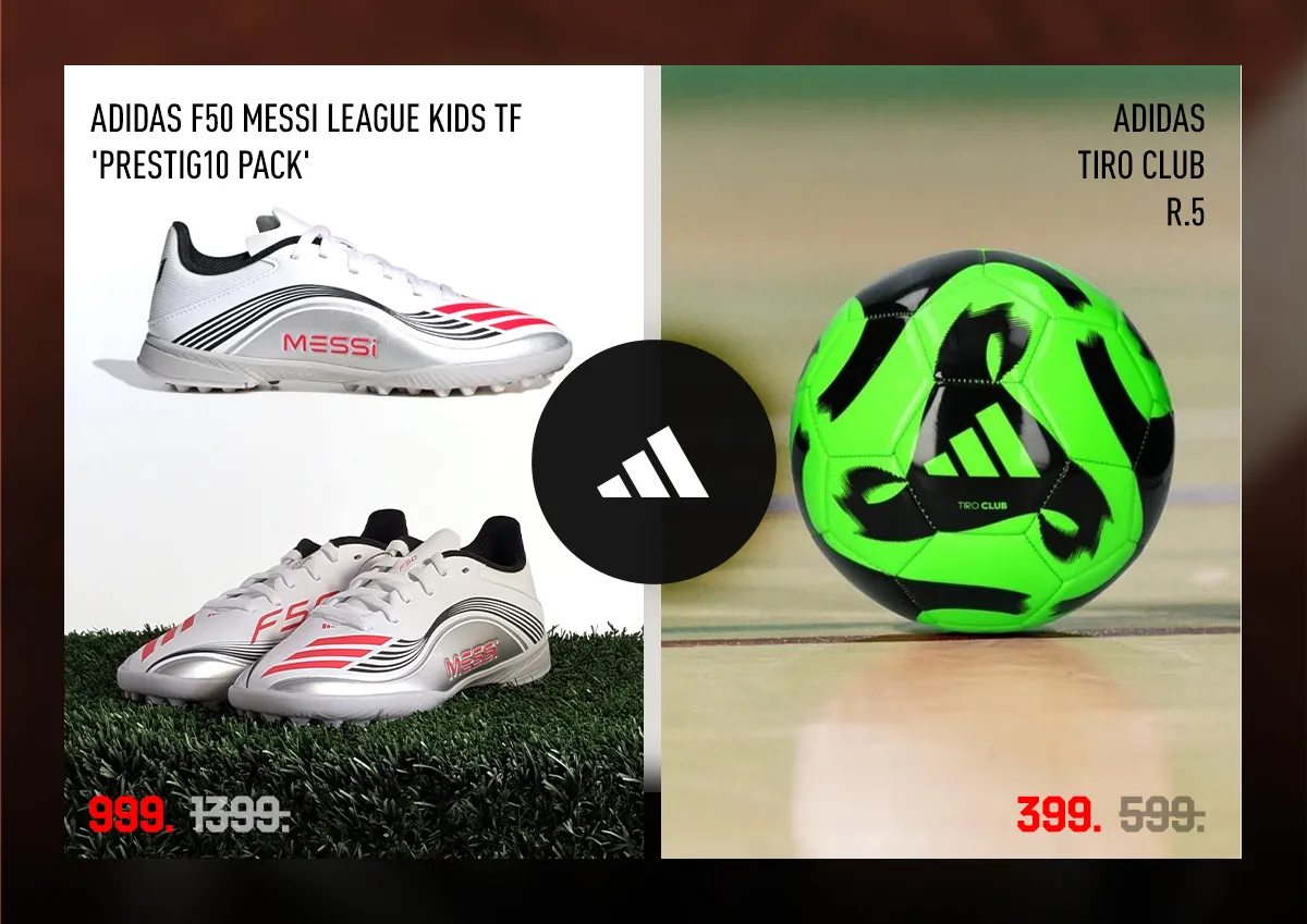 Pentru performanță pe teren, adidas vine cu echipamente dedicate jucătorilor de toate nivelurile. Ghete pentru fotbal adidas F50 Messi League TF acum la doar 999 lei și minge de fotbal adidas TIRO – 399 lei.