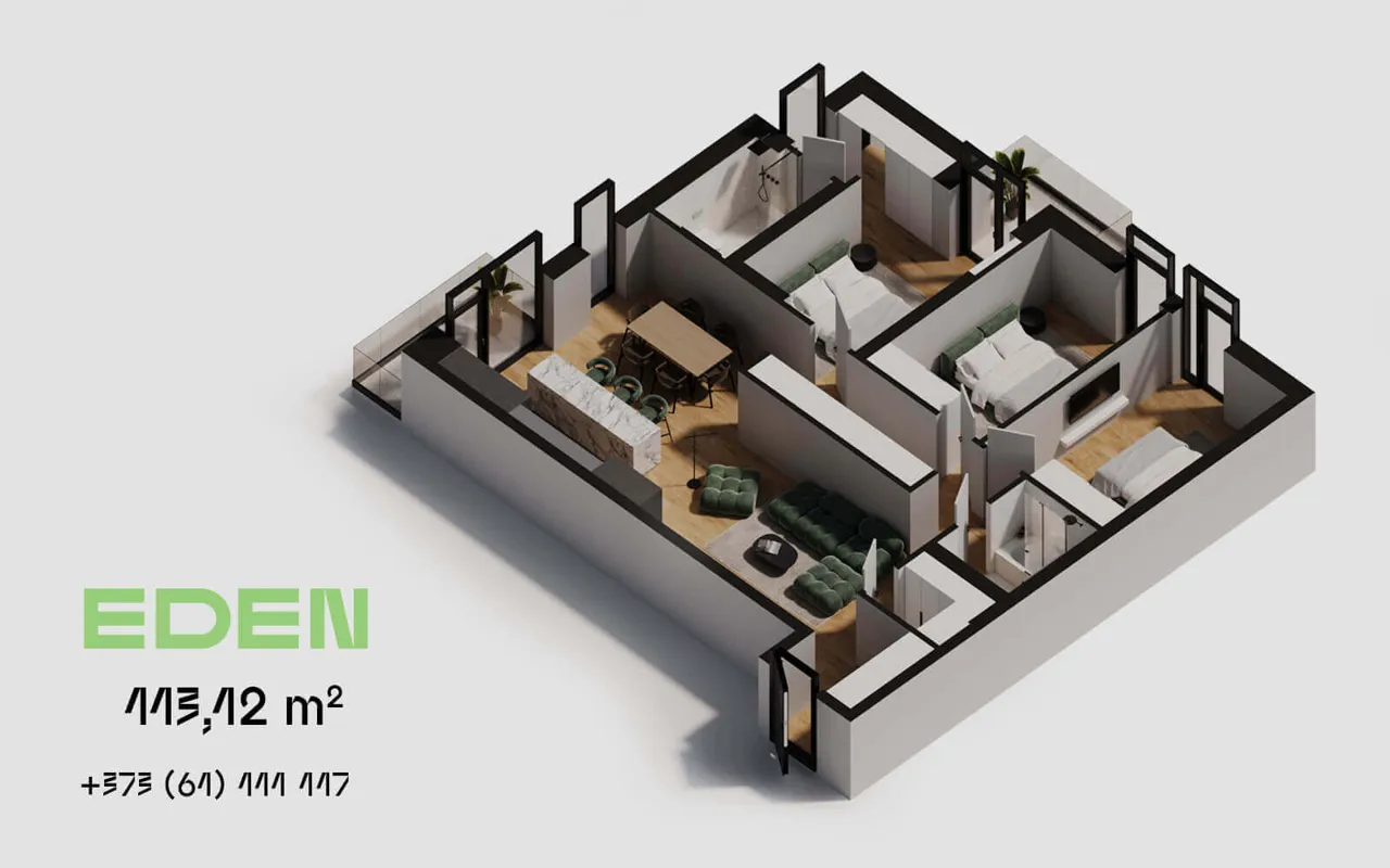 EDEN Buiucani este un complex rezidențial creat pentru oamenii care aleg calitatea vieții. Arhitectura modernă, compartimentările bine gândite ale apartamentelor, curtea amenajată și infrastructura confortabilă creează un spațiu armonios pentru locuire într-unul dintre cele mai apreciate sectoare ale orașului.