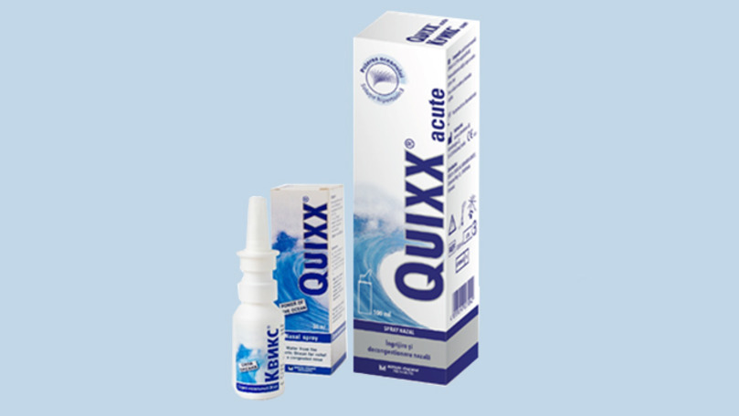 QUIXX ® este un spray nazal cu apă din Oceanul Atlantic și o concentrație mai mare de sare în comparație cu cea din celulele membranei mucoase nazale. Acesta decongestionează într-un mod complet natural. QUIXX® reduce în mod eficient edemul mucoasei nazale, ameliorează congestia nasului și a sinusurilor, și îmbunătățește respirația nazală în timpul răcelii, gripei, rinitei, sinuzitei sau alergiilor. Prin urmare, Quixx®ajută la restabilirea funcţiilor nazale având ca rezultat reducerea riscului de complicaţii (sinuzită, otită) şi ameliorarea respiraţiei. QUIXX® conţine numai ingrediente naturale, nu conţine conservanţi, nu produce dependenţă și este sigur în cazul utilizării pe termen lung. QUIXX® pot utiliza adulţii, copiii şi sugarii în vârstă de 6 luni sau mai mari. Quixx® poate fi utilizat şi în perioada de sarcină şi de alăptare.