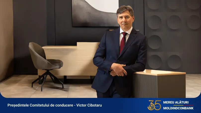 Moldindconbank anunță că, începând cu data de 7 martie 2026, funcția de Președinte al Comitetului de Conducere va fi exercitată de Victor Cibotaru, în prezent Prim-Vicepreședinte al Comitetului de Conducere. Candidatura sa a fost aprobată de Banca Națională a Moldovei prin Hotărârea din 16 februarie 2026.