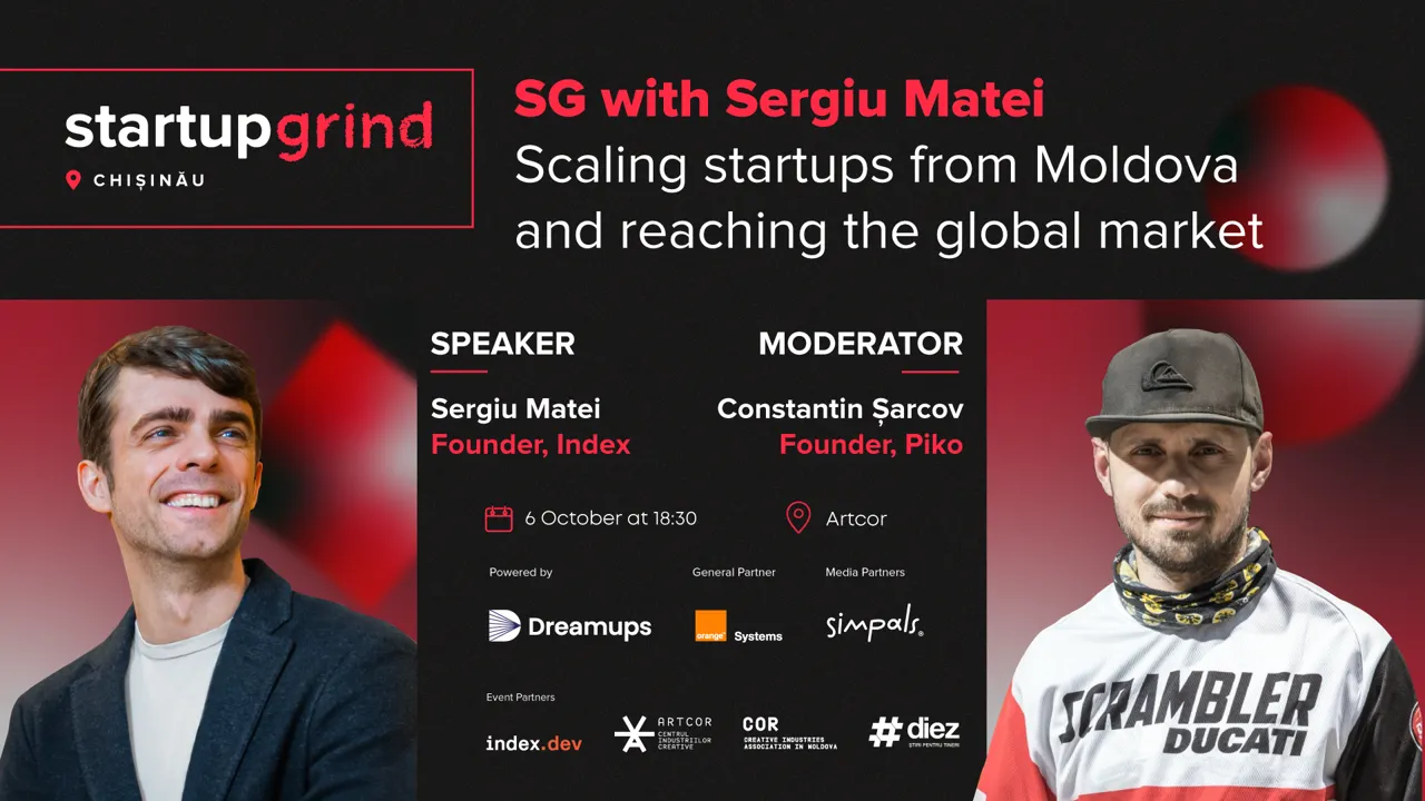 Scalează startup-ul tău spre piața globală la ediția din octombrie Startup Grind, alături de antreprenorul Sergiu Matei, fondator index
