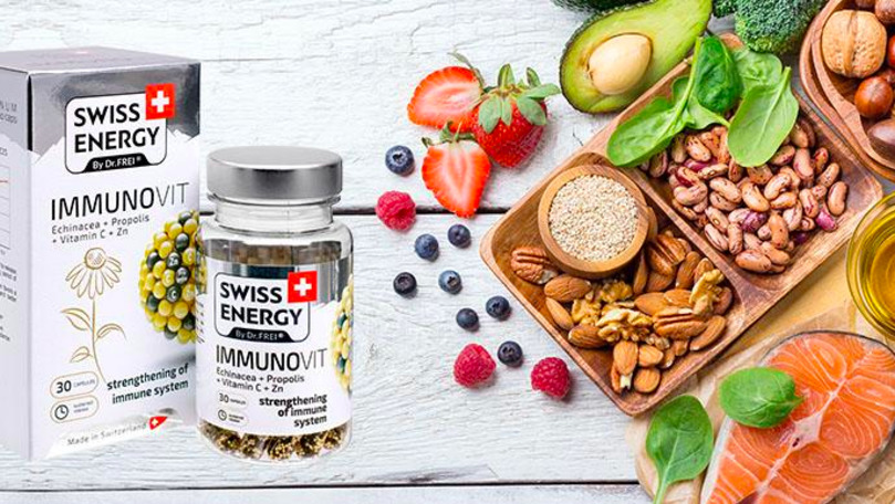 Brandul elvețian Swiss Energy practic a cucerit piața de internațională cu o gamă exclusivă de produse sănătoase de calitate superioară, care vin să răspundă celor mai frecvente deficiențe nutritive semnalate la nivel internațional. Complexele de vitamine și minerale Swiss Energy sunt produse din ingrediente brevetate Quali-Blends (Elveția), renumite în întreaga lume grație calității, eficacității și inofensivității acestora. Unul dintre suplimentele recomandate, mai ales în sezonul răcelilor, sunt vitaminele în capsule Swiss Energy IMMUNOVIT cu eliberare prelungită a substanțelor active. Într-o singură capsulă se conține combinația perfectă – zincul și vitamina C – care ajută la buna funcționare a sistemului imunitar și la reducerea riscului de îmbolnăvire. Vitaminele elvețiene Swiss Energy IMMUNOVIT contribuie la normalizarea funcțiilor organismului și sporesc rezistența la infecții. Capsulele Immunovit mai conțin echinaceea – cunoscută ca una dintre plantele cu efect imunomodulator necesar pentru întărirea sistemului imunitar și propolisul – un antibiotic natural, care anihilează bacteriile, fără a le distruge pe cele benefice.