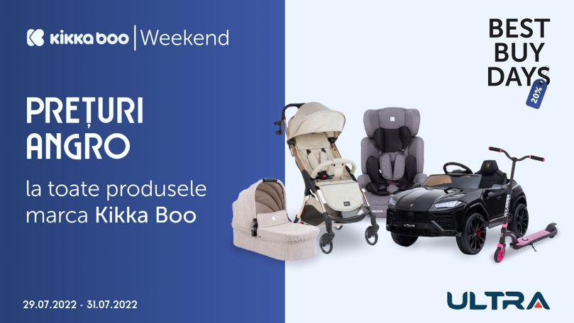 În acest weekend în cel mai mare showroom de electrocasnice Ultra, puteți procura cărucioare pentru copii, scaune auto, biciclete, trotinete, mașini și motociclete electrice pentru copii, precum și accesorii pentru igienă pentru bebeluși de la brandul Kikka Boo la prețuri Angro.