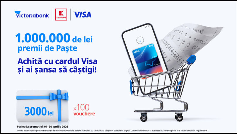 Cumpărăturile de Paște pot aduce beneficii suplimentare. Victoriabank le oferă clienților șansa să câștige premii în valoare totală de 1 milion de lei, în cea mai generoasă ediție a campaniei promoționale dedicate sărbătorilor. Aceasta este realizată în parteneriat cu Visa și Kaufland și oferă două modalități simple de câștig.