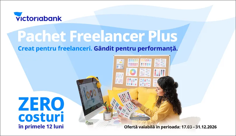 Pachetul „Freelancer Plus” este disponibil în toate unitățile Victoriabank. Oferta este valabilă până la 31 decembrie 2026.