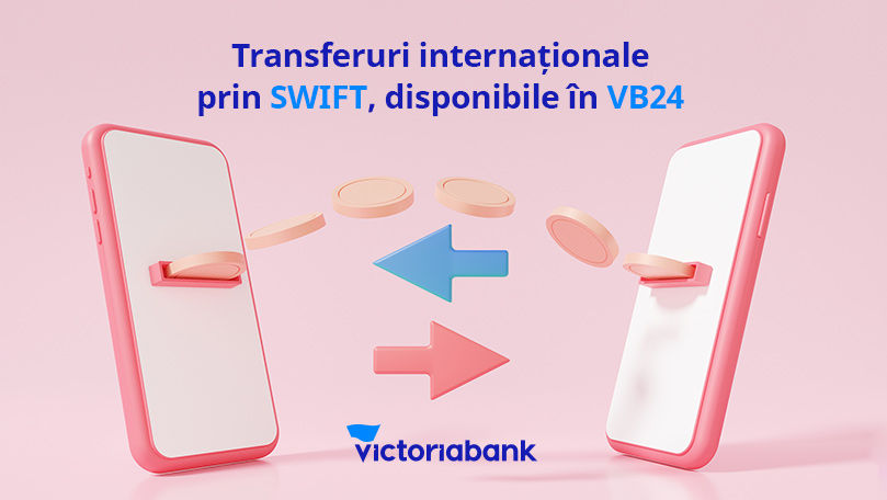 Victoriabank își anunță clienții că, începând de astăzi, pot face transferuri internaționale direct din telefonul mobil prin aplicația VB24 Mobile sau de la calculator, prin VB24 Web.