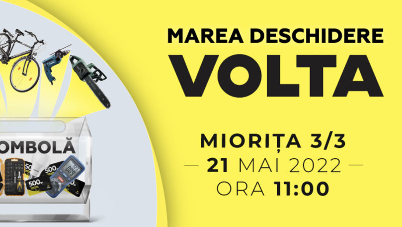 21 Mai, ora 11:00, strada Miorița 3/3 va avea loc deschiderea grandioasă a celui de-al 6-lea magazin VOLTA în orașul Chișinău!
