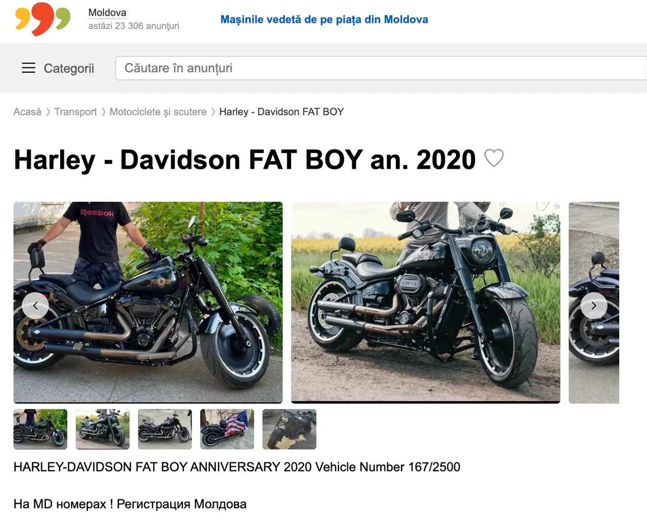 Harley-Davidson Fat Boy Anniversary a fost produs într-o serie limitată de doar 2.500 de exemplare. Motocicleta cu numărul 167 este acum disponibilă spre achiziție în Moldova.