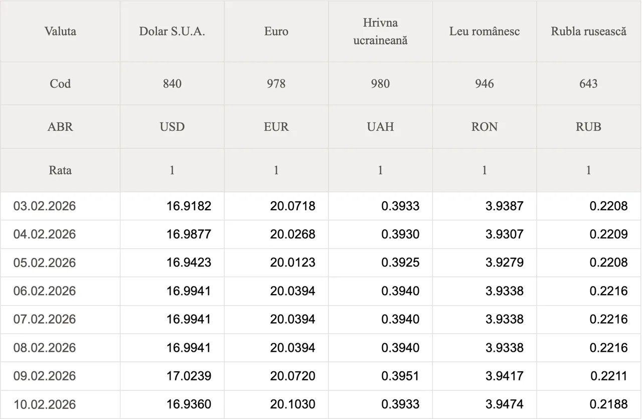 Banca Națională a Moldovei (BNM) a stabilit datele oficiale de schimb valutar pentru astăzi.