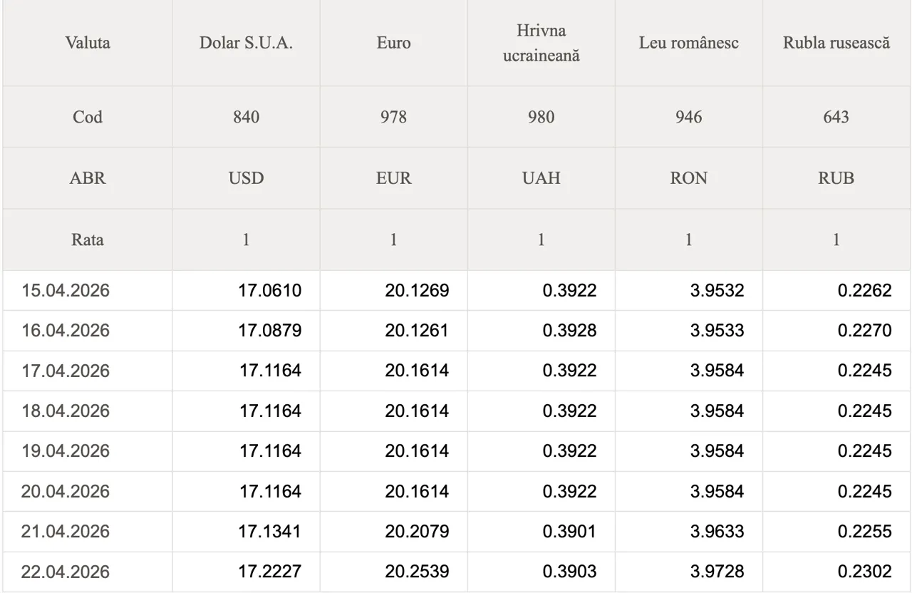 Curs valutar 22 aprilie 2026: Cât valorează un euro și un dolar