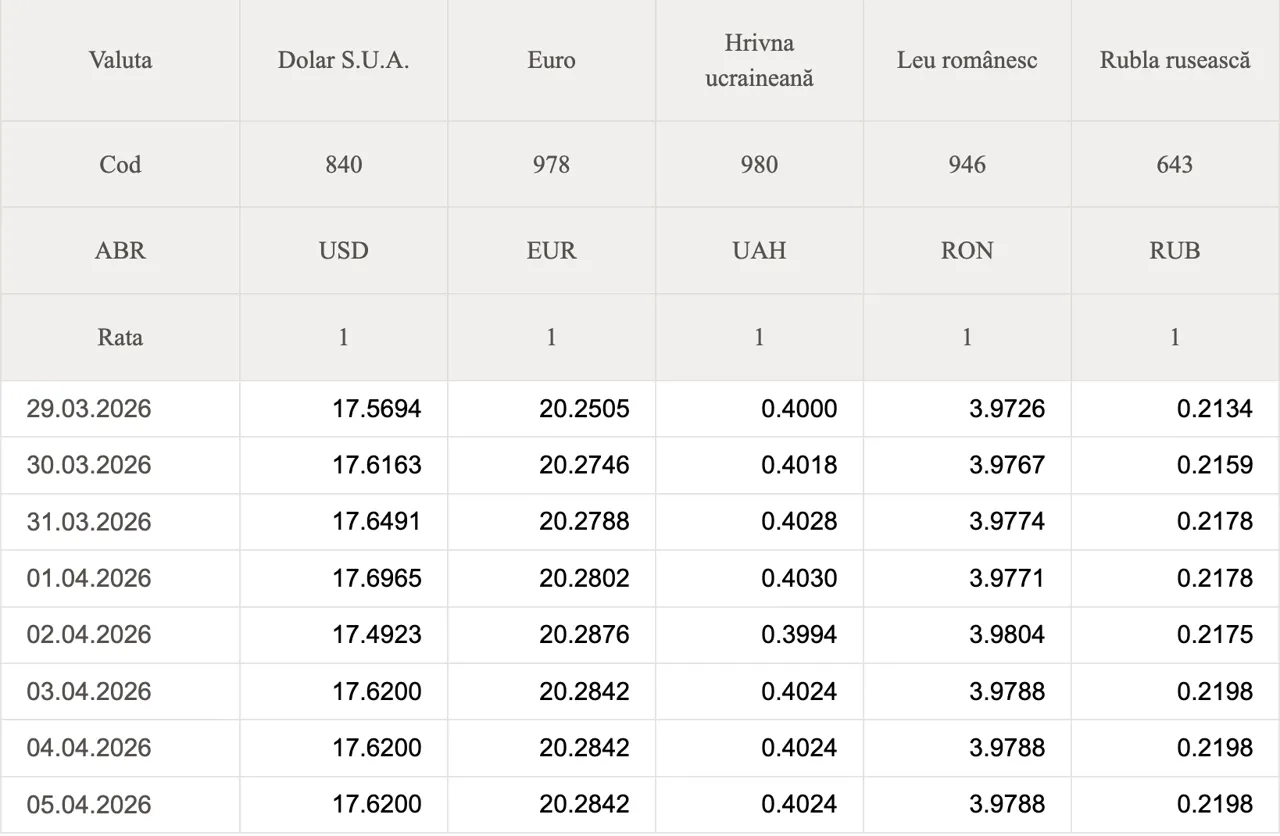 Curs valutar 5 aprilie 2026: Cât valorează un euro și un dolar