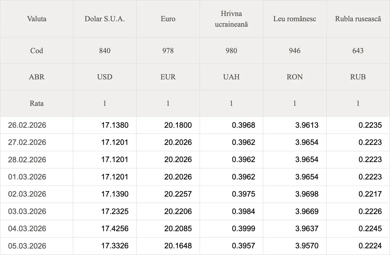 Curs valutar 5 martie 2026: Cât valorează un euro și un dolar