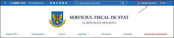Pasul 1: Accesați SIA „Cabinetul personal al contribuabilului” de pe portalul www.sfs.md, utilizând semnătura electronică/mobilă sau EVOSign;