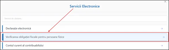 Pasul 3: accesați serviciul „Verificarea obligației fiscale pentru persoane fizice”;