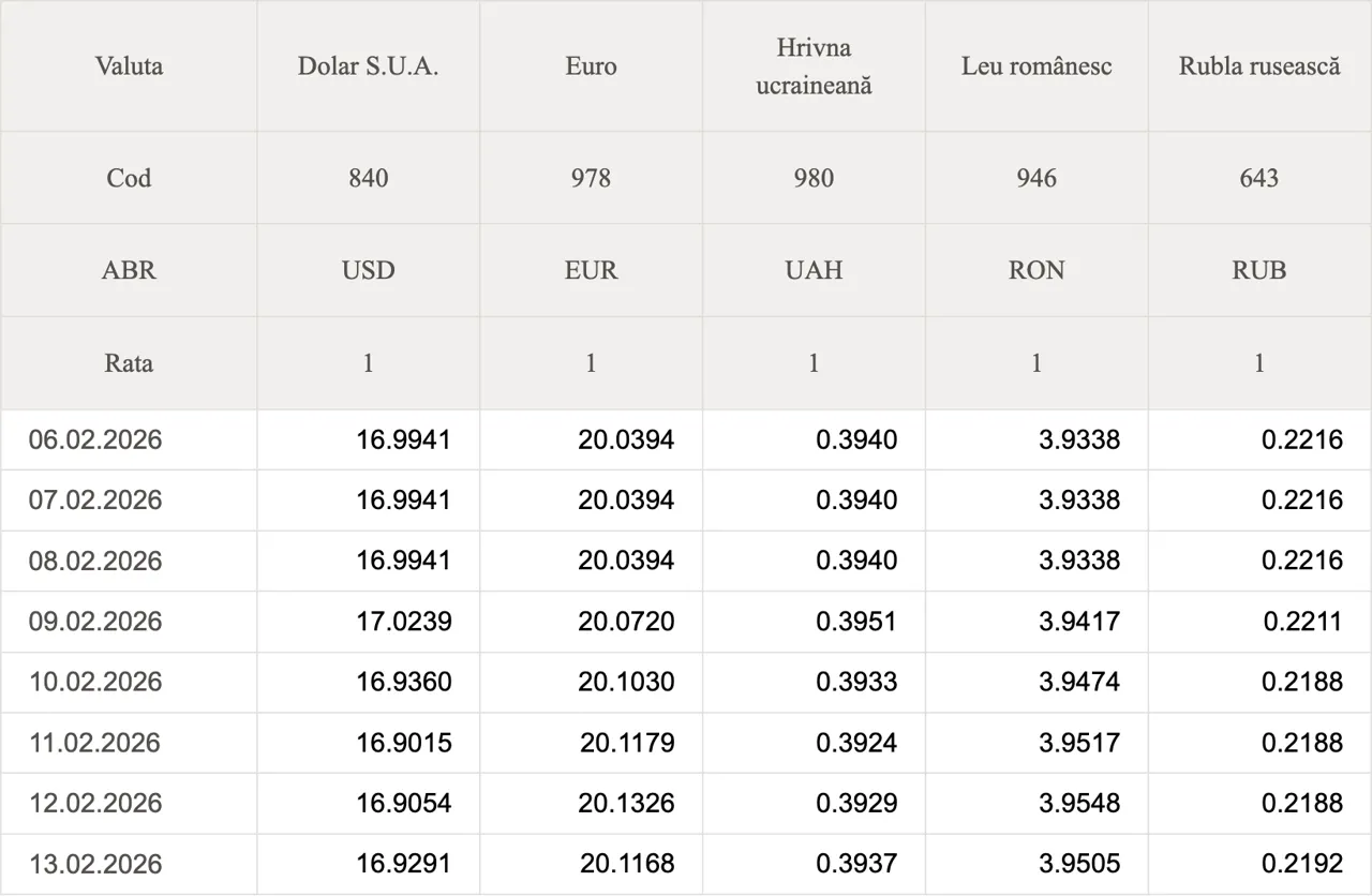 Curs valutar 13 februarie 2026: Cât valorează un euro și un dolar